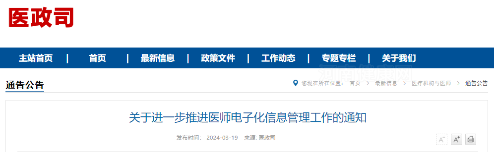 为深入贯彻落实国务院关于加快推进“互联网+政务服务”有关部署和《国务院办公厅关于加快推进电子证照扩大应用领域和全国互通互认的意见》(国办发〔2022〕3号),进一步推进医师电子化信息管理,提升政务服务水平与效率,现通知如下: